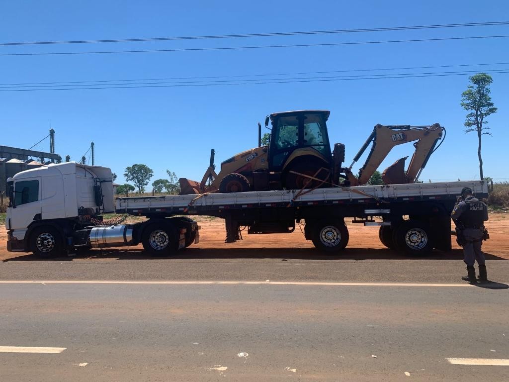 Ação integrada da Polícia Militar de MT e GO recupera retroescavadeira roubada em São Paulo