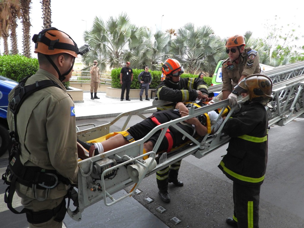 O Corpo de Bombeiros Militar de Mato Grosso (CBMMT) participou, nesta sexta-feira (27.09), de um simulado operacional de combate a incêndio, salvamento e resgate, além de atendimento pré-hospitalar, no Shopping Estação, em Cuiabá.