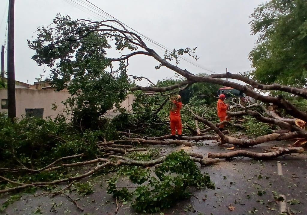 Corpo de Bombeiros registra três ocorrências de queda de árvore após chuva intensa