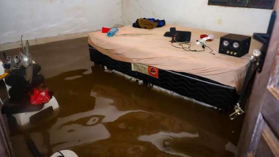 As intensas chuvas causaram inundações em vários bairros e obrigaram seis famílias a abandonar as suas casas, sendo acolhidas numa escola adaptada como abrigo temporário pela administração municipal.