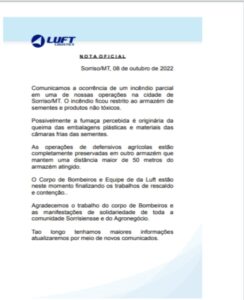 Fogo em empresa de fertilizantes tem alerta da Defesa Civil e causa pânico na população de Sorriso