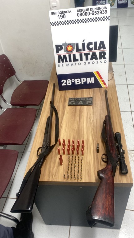 Policiais militares do 28º Batalhão prenderam um homem de 57 anos pelos crimes de invasão de propriedade rural, ameaça e porte ilegal de arma, na noite deste domingo (20.10), na zona rural de Jaciara. Com o suspeito, a PM apreendeu duas espingardas e 66 munições.