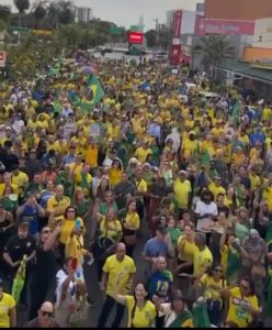 O ex-presidente Jair Messias Bolsonaro participou remotamente por vídeochamada, transmitindo mensagens de fé e vitória aos manifestantes: “Parabéns a todos vocês que se manifestam pela liberdade. Tenho certeza de que, com fé em Deus, a vitória será nossa” .
