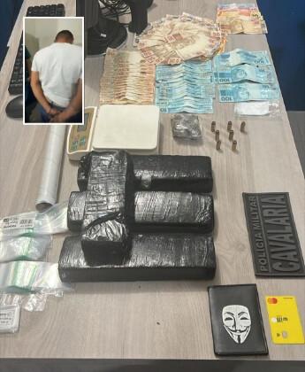 Na residência do detido, a PM encontrou quatro tabletes de maconha adicionais, outras porções de drogas e oito munições de calibre .40.