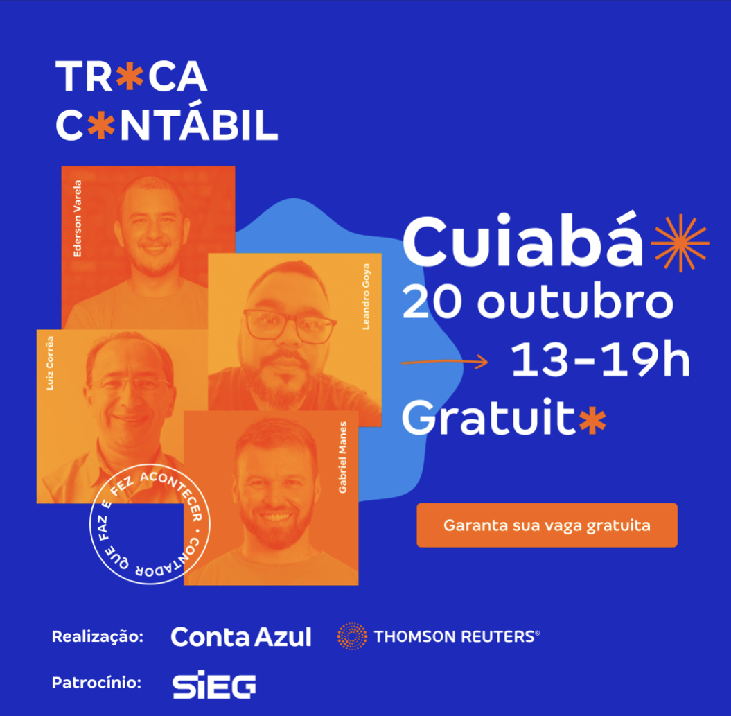 Há sete meses, as empresas Conta Azul e as Soluções Domínio da Thomson Reuters, líderes em seus segmentos, vem rodando o país com o TRoCA Contábil, evento que carrega em seu nome as iniciais das duas companhias, simbolizando a colaboração para intercâmbio de soluções e ideias. O evento é totalmente gratuito e voltado para quem busca atualização no mercado contábil, mediante às mudanças no setor. O evento chega em Cuiabá no dia 20 de outubro, no Holiday Inn Cuiabá. A inscrição e participação no encontro são gratuitas. Para participar do evento, é preciso fazer a inscrição neste link.