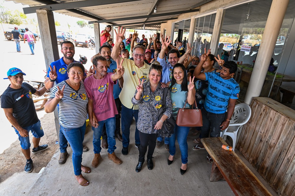 Ao lado do candidato a deputado federal Fabio Garcia (UB) e da prefeita de Ribeirão Cascalheira, Luzia Brandão, Gilberto recebeu apoio em reunião no município e ouviu as necessidades dos moradores.