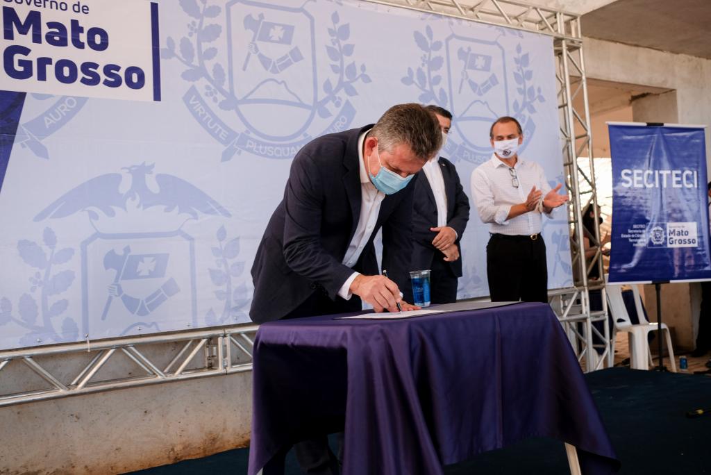 O governador Mauro Mendes garantiu “requinte de qualidade” para a Escola Técnica Estadual (ETE) de Cuiabá, cuja ordem de serviço foi assinada na tarde desta segunda-feira (01.06).