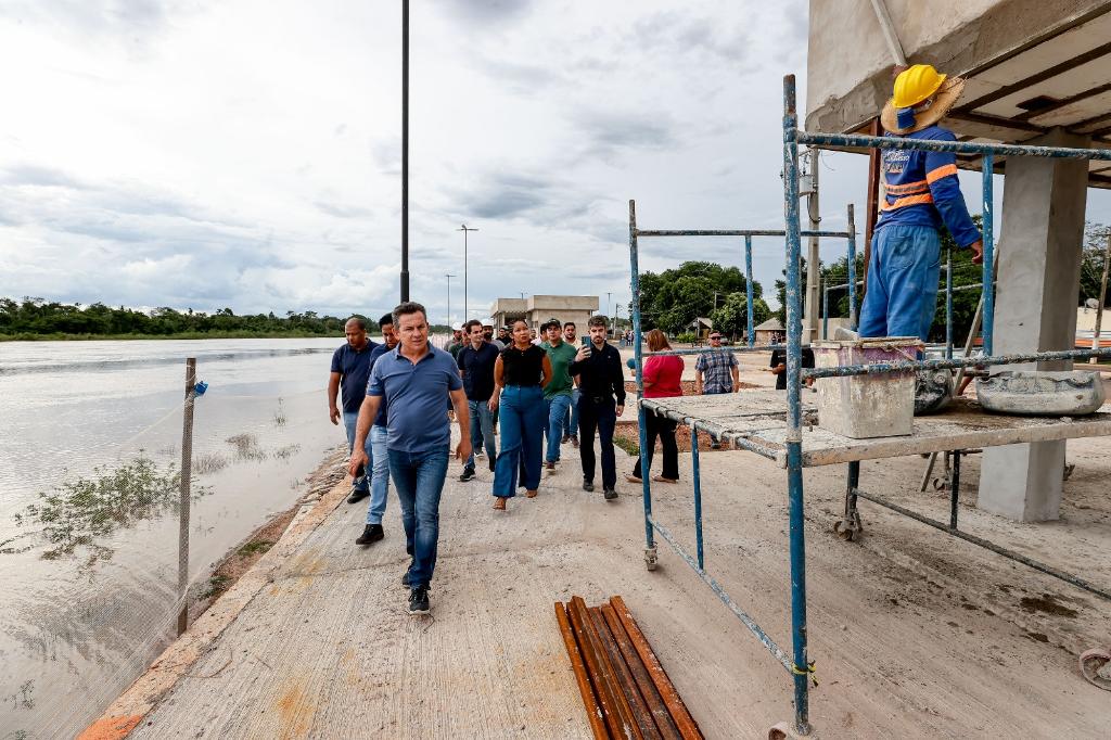 Governador Mauro Mendes realiza vistoria na Orla de Santo Antônio de Leverger, obra está com 80% concluída