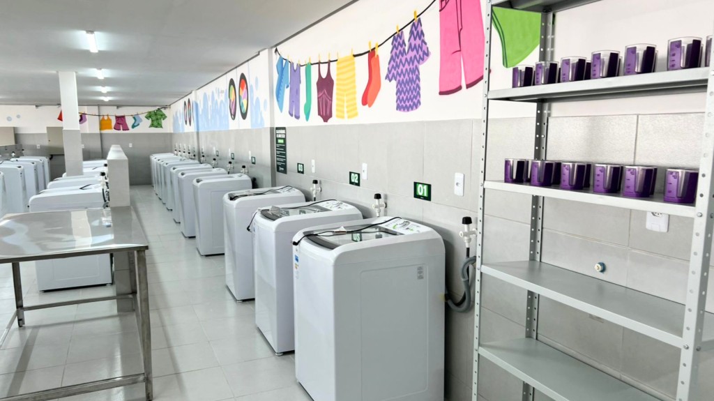“A lavagem de roupa é a tarefa que mais consome tempo na vida das mulheres. Eu estava muito atrasada nos trabalhos da faculdade por falta de tempo, principalmente pelo cuidado com meus filhos pequenos. Cheguei a pensar em desistir, mas decidi continuar. A lavanderia veio para somar, porque sobra um tempinho para cuidar da família e me dedicar aos estudos”, detalhou.