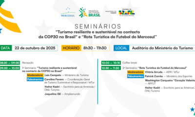 Ministério do Turismo debate sustentabilidade e rota de futebol do Mercosul em seminários abertos ao público e gratuitos