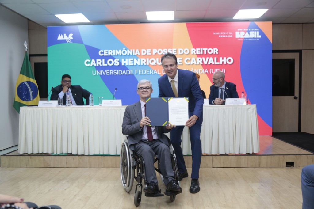 O Ministério da Educação (MEC), nesta quarta-feira, 19 de fevereiro, o novo reitor da Universidade Federal de Uberlândia (UFU), Carlos Henrique de Carvalho. A cerimônia de posse foi realizada na sede do MEC, em Brasília, e contou com a presença do ministro Camilo Santana, que reforçou o compromisso da pasta com a autonomia das instituições e com o respeito à democracia.