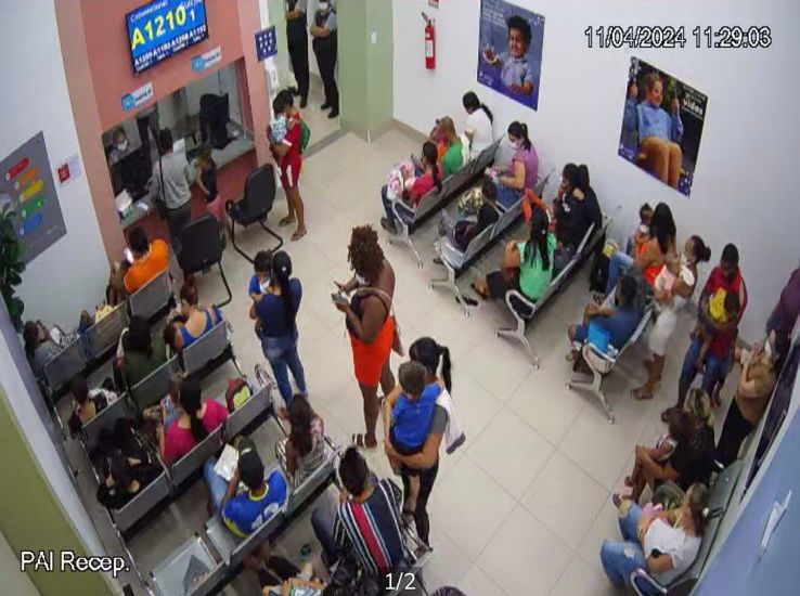 _Na manhã desta quinta-feira (11.04), é possível ver por imagens a lotação da recepção e do corredor de entrada da unidade_