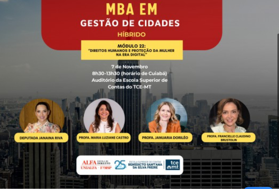 A programação abordará a aplicação dos direitos humanos com foco na proteção da mulher em contextos digitais, analisando legislação, políticas públicas e mecanismos institucionais de enfrentamento à violência de gênero online, com ênfase na atuação dos poderes e das instituições públicas.