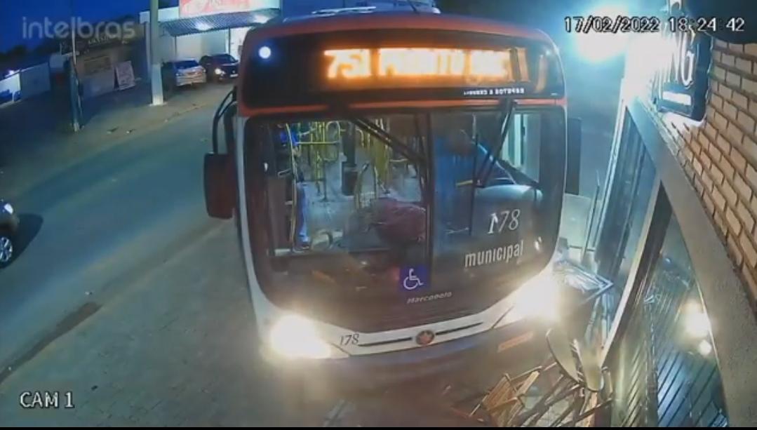 Ônibus desgovernado bate em motociclista e atinge parede de um comércio em VG