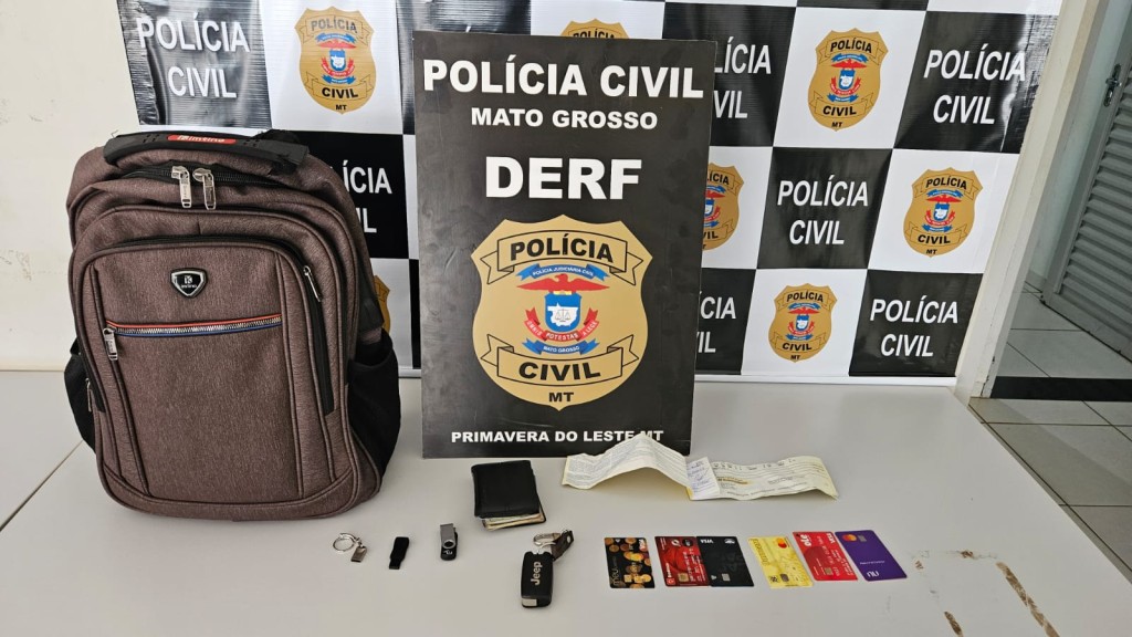 Os policiais civis realizaram diligências e observaram em imagens das câmeras de segurança da rodoviária da cidade que uma pessoa desceu do ônibus com a mochila. Na sequência, os investigadores da Derf receberam informações que os cartões da vítima foram usados em compras em dois estabelecimentos comerciais de Primavera do Leste.