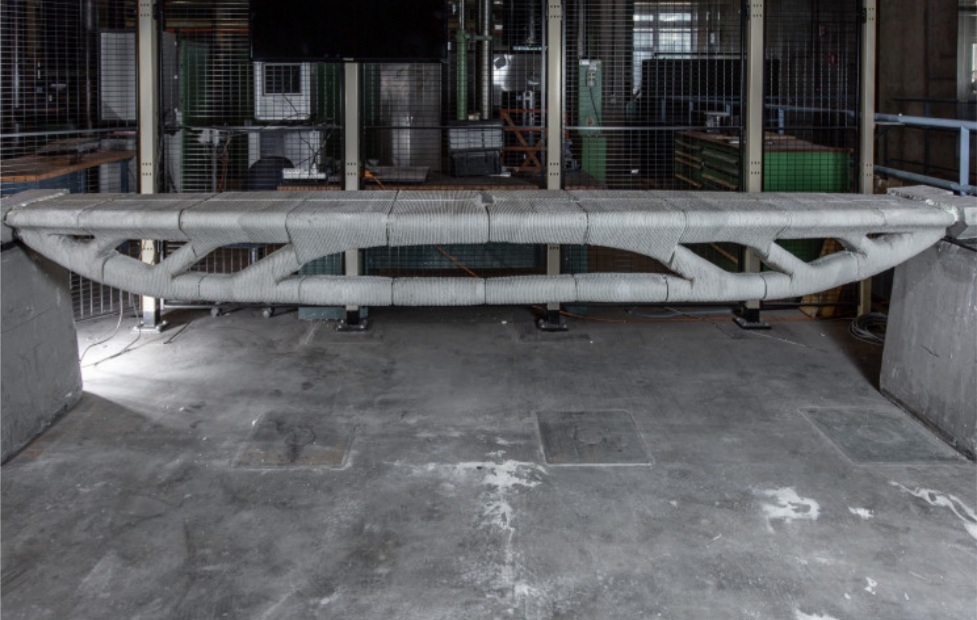 A universidade e a empresa se uniram para imprimir uma ponte de concreto a partir de uma impressora 3D. A nova técnica constrói estruturas de concreto depositando uma mistura de concreto especialmente projetada camada por camada. De acordo com a Vertico, esse processo elimina a necessidade de moldes caros e, mais importante, oferece mais liberdade de forma às estruturas.