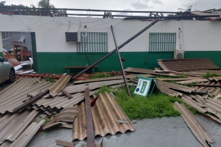 Ventos intensos danificaram o telhado da Unidade Básica de Saúde (UBS) no bairro Cidade Verde, que funcionava temporariamente no Centro Comunitário.